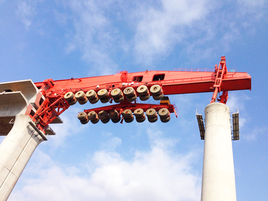 公司主要設(shè)備有:SLJ900T流動式運(yùn)架一體機(jī)、SXJ900T/32M分體式架橋機(jī)及運(yùn)梁車、MG450T提梁機(jī)(跨度有35M~40M,起升凈高20~40M)、ME900T提梁機(jī)、SXJ550T/32M一跨式架橋機(jī)及運(yùn)梁車、SGTJ180T鋪架機(jī)等高鐵運(yùn)架設(shè)備。